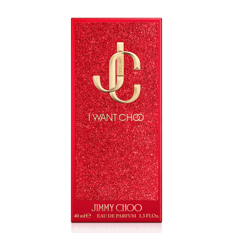 I Want Choo é uma fragrância contemporânea e sedutora, com o DNA da marca: o monograma JC, muito glitter e muito dourado.